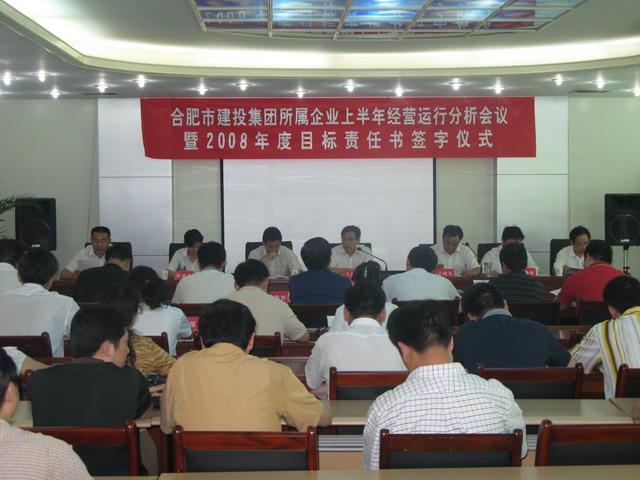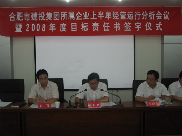 7月23日下午,集团公司所属企业上半年经营运行分析会议暨2008年度目标责任书签字仪式在301会议室召开。集团公司领导王昌旭、吴晓东、陆勤航、程世琴,市国资委业绩考核处处长汪浩、稽查员许国汉,八家所属企业全体领导班子成员及集团公司相关部门负责人参加会议。会议由集团公司副总经理吴晓东主持。