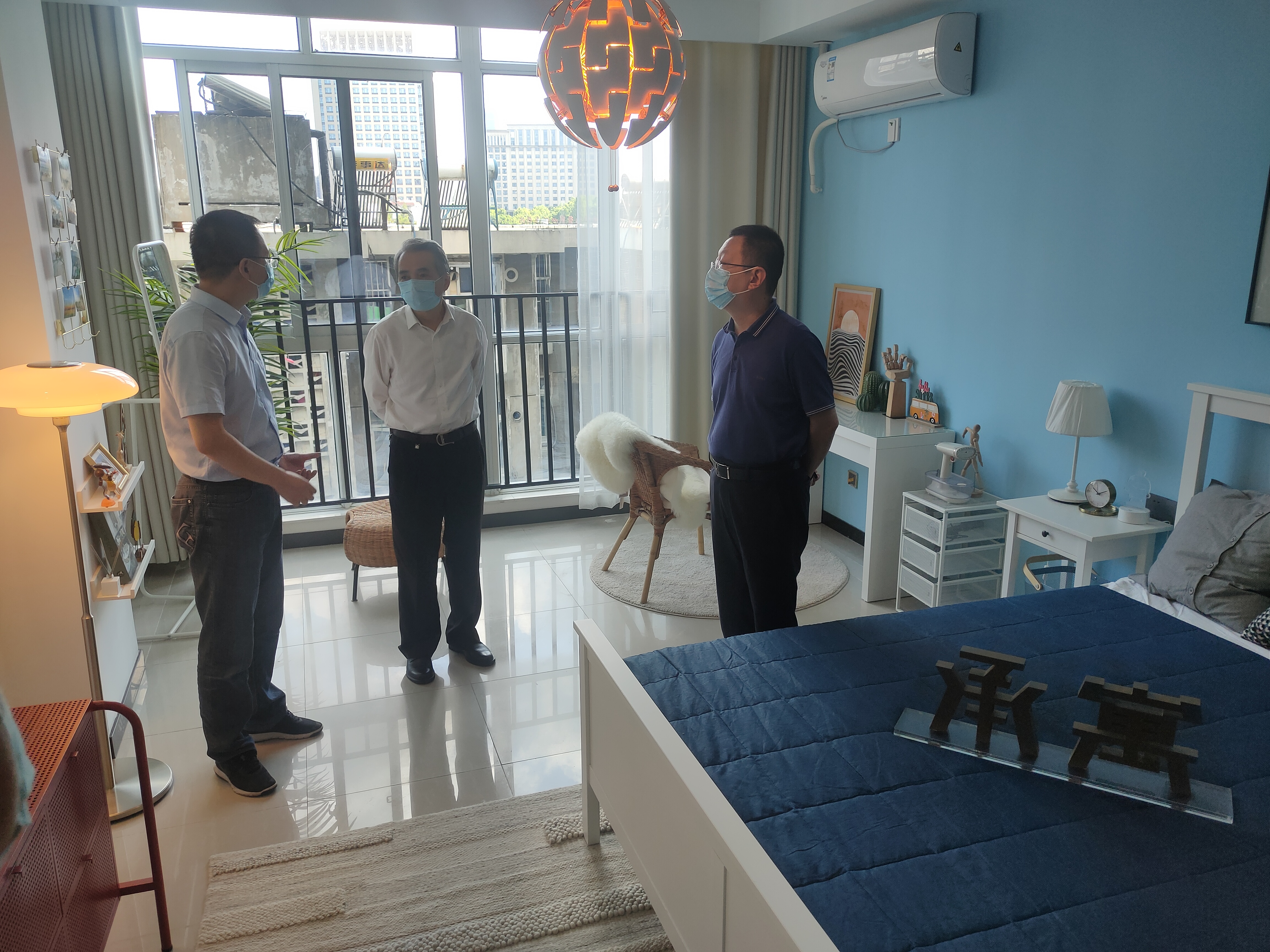 张毅一行首先来到合房股份承寓城市华庭店,实地参观样板间,详细了解项目设计改造成本、客群定位、配套设施服务等情况,听取租赁住房业务新建、改建、筹集、运营等有关情况介绍。