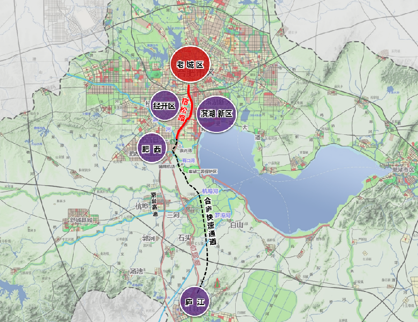 宿松路快速化改造工程是连接老城区、经开区、滨湖新区之间重要的快速交通走廊,由建投集团所属合肥城投公司代建。项目北起南二环南至深圳路,主线16.7km,含东西方向改造建设总里程22.85km,红线宽60米,设计时速80km/h,主线分段采用“高架+地面+隧道”快速立体交通型式,总概算约83亿元。