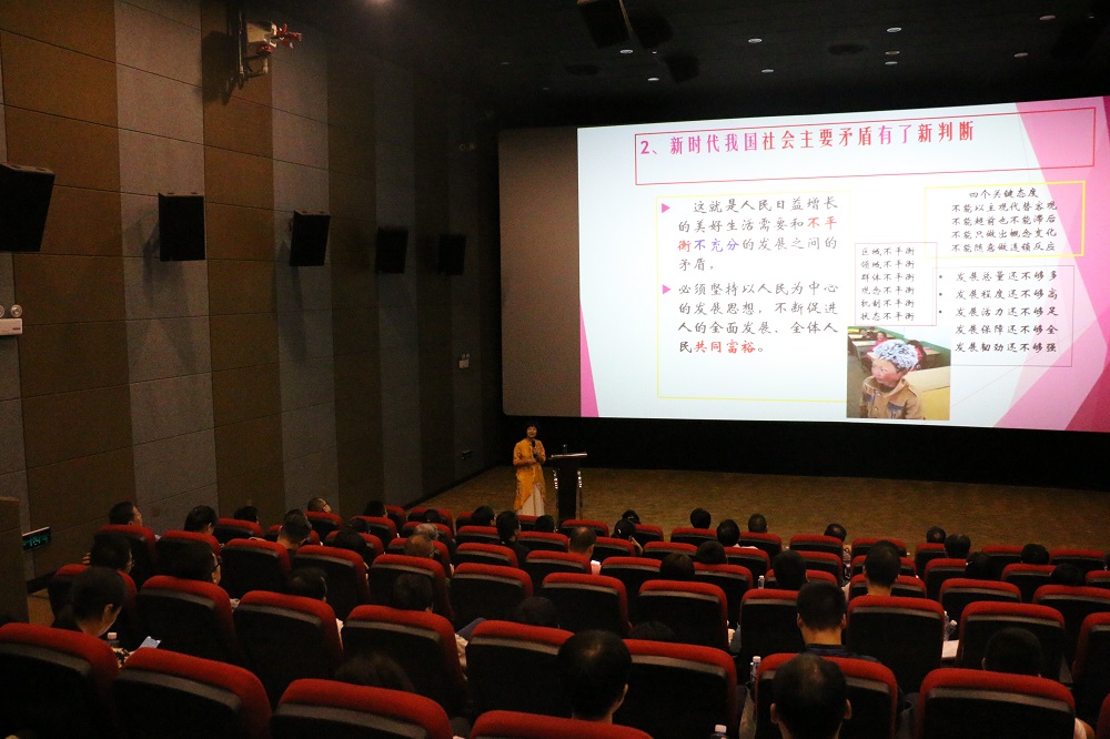 活动开始,伴随着庄严肃穆的《义勇军进行曲》,全体党员起立齐声高唱国歌,用歌声向新中国成立70周年致以最真挚的祝福。随后,合肥市委党校凌德政教授以《国之大庆盛世华诞》为题,为全体党员上专题党课,带领大家从国庆庆典中感受祖国逐渐走向强大。