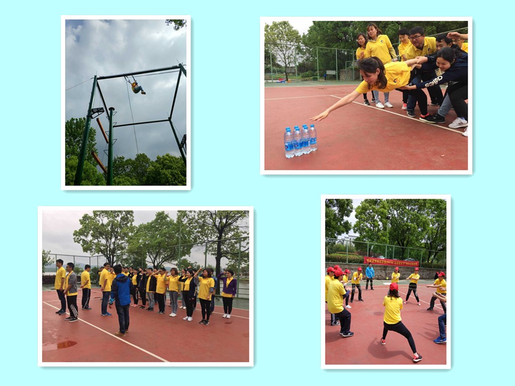 为期一天的拓展训练内容包括“破冰起航”、“群龙取水”、“鼓动人心”、“智力电网”、“高空跳杆”等活动项目。在“群龙取水”比赛中,大家默契十足,合作精神展现的淋漓尽致,通过队友的帮助,冲过重重阻碍,终于成功取水,比赛紧张,扣人心弦;在“鼓动人心”比赛中,队员们统一步调,不断尝试、不断总结、不断进步,团队合作精神贯穿始终;在“智力电网”比赛中,为了集体荣誉,大家精确计算,合理谋划,所有队员不怕脏不怕累,都以十足的拼搏精神全力以赴,活动场上口号声、欢呼声、呐喊声、掌声交织成一片;在“高空抓杆”比赛中,队员们以最大的努力克服心里障碍、发掘自身潜力,冷静面对、挑战自我,深刻体会了团队协作、信任互助和自信的重要性,承受住压力,战胜了困难,用汗水书写了弘扬五四的华彩乐章。